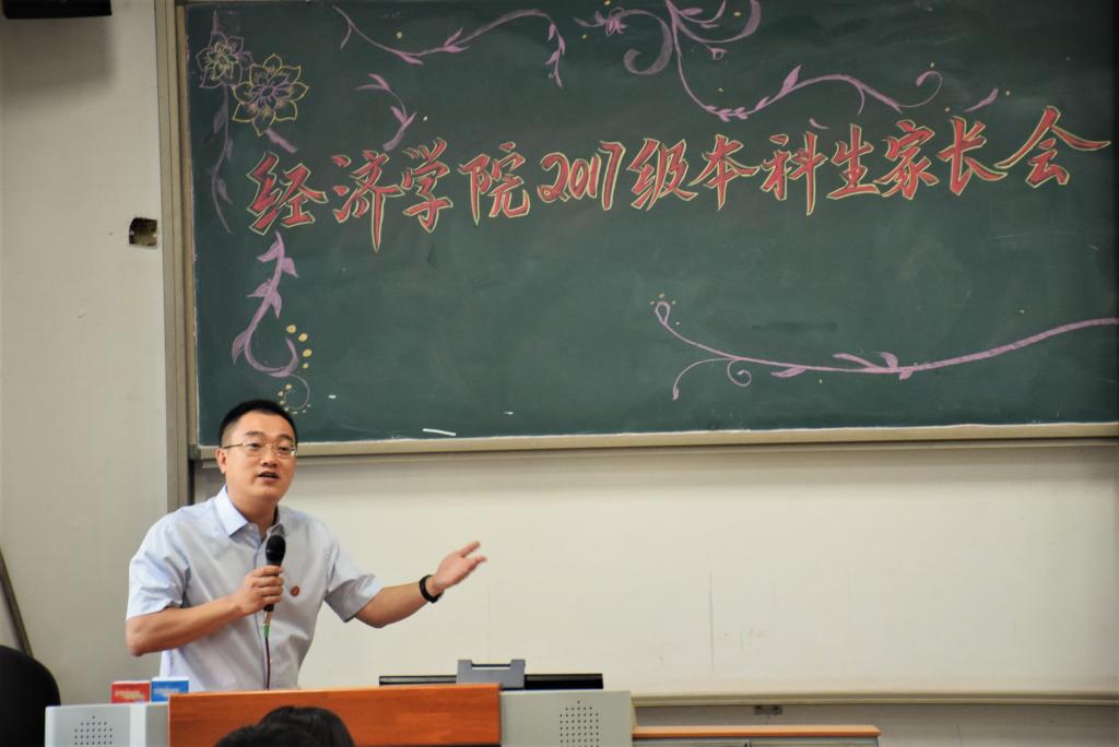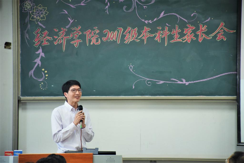 李涛院长发言结束后,陈斌开副院长为诸位家长简单介绍了学校和学院建校历史、校园环境及办学状况,重点介绍了德赢AC米兰官网师资力量、特色品牌活动以及德赢AC米兰官网保研情况。陈斌开副院长强调学生应主动与老师接触,充分利用德赢AC米兰官网师生比高的优势,高质量地完成学业。