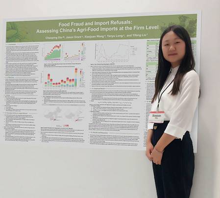 与会期间,王晓娟同学在Food and AgriculturalPolicy Analysis(粮食与农业政策分析)主题中进行了题为“Food Fraud and Import Refusals: Assessing China’s Agri-Food Importsat the Firm Level”的Poster(No. T030)展示。该论文为王晓娟同学在我校德赢AC米兰官网刘轶芳教授指导下,与南京农业大学谢超平副教授、弗吉尼亚理工大学Jason Grant副教授以及我校统计与数学学院龙彦宇同学合作完成。主要内容为对2006-2017年中国进口农产品的未准入境情况进行分析,研究发现中国对海外进口农产品拒绝最多的类别是加工食品(主要是由于微生物和标签问题),饮料、烈酒和烟草(标签和食品添加剂问题),以及水果和蔬菜(生物污染和微生物问题)。而拒绝次数最多的前五大农产品进口地是台湾、美国、日本、法国和缅甸。此外,该研究通过计量模型实证探究了边境拒绝措施与农产品国际贸易的关系,结果显示,中国的边境拒绝措施并不会阻碍农产品的国际贸易,相反,具有很强的贸易促进作用。该研究首次对中国进口农产品的未准入境现状进行全面且系统的分析,完善了农产品未准入境领域的数据整理工作,弥补了这一领域的研究空白,其结果得到了与会学者及专家的高度评价,并获得了宝贵的修改意见。