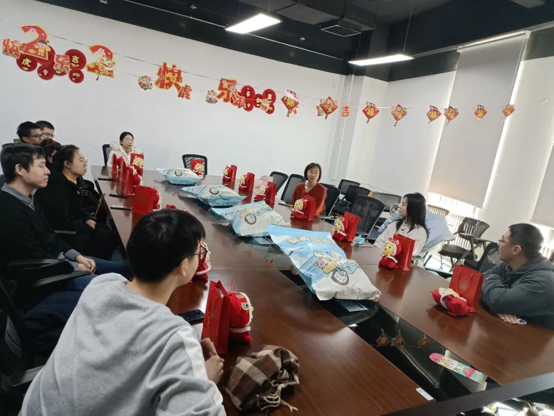 学院精心布置了活动现场,会议室门口挂起了春联,“2022新年快乐”的拉旗、“虎年大吉”和“万事如意”的纸折扇使现场年味浓浓,气氛温馨。