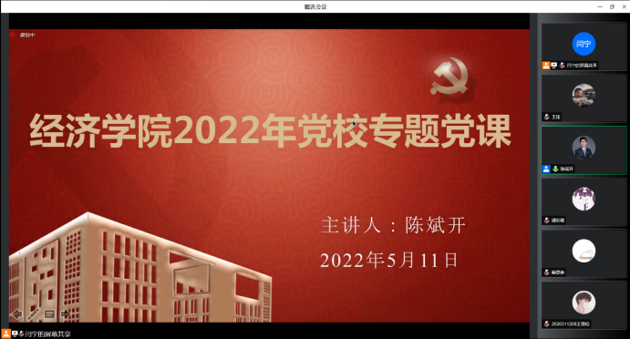 2021年5月11日,德赢AC米兰官网院长陈斌开讲授“时代与责任”专题党课。学院组织员刘滨、党校班主任闫宁以及56名入党积极分子和发展对象参加了本次党课。
